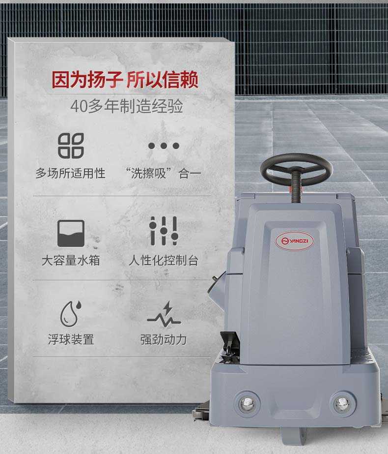 扬子YZ-X90驾驶式洗地机,拖地机,厂家直销,省30%成本,工作时间:2-3小时,重量:236kg,效率:4500m2/h,大于15人工作效率,干净不留痕,免费试机,买贵包退.专业的售后团队,免费上门指导操作和维护.扬子YZ-X90分:免维护款和锂电款,想进一步了解,请咨询在线客服或拨打官方免费热线,客服详细解答产品参数和最新活动价格