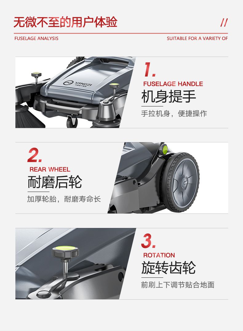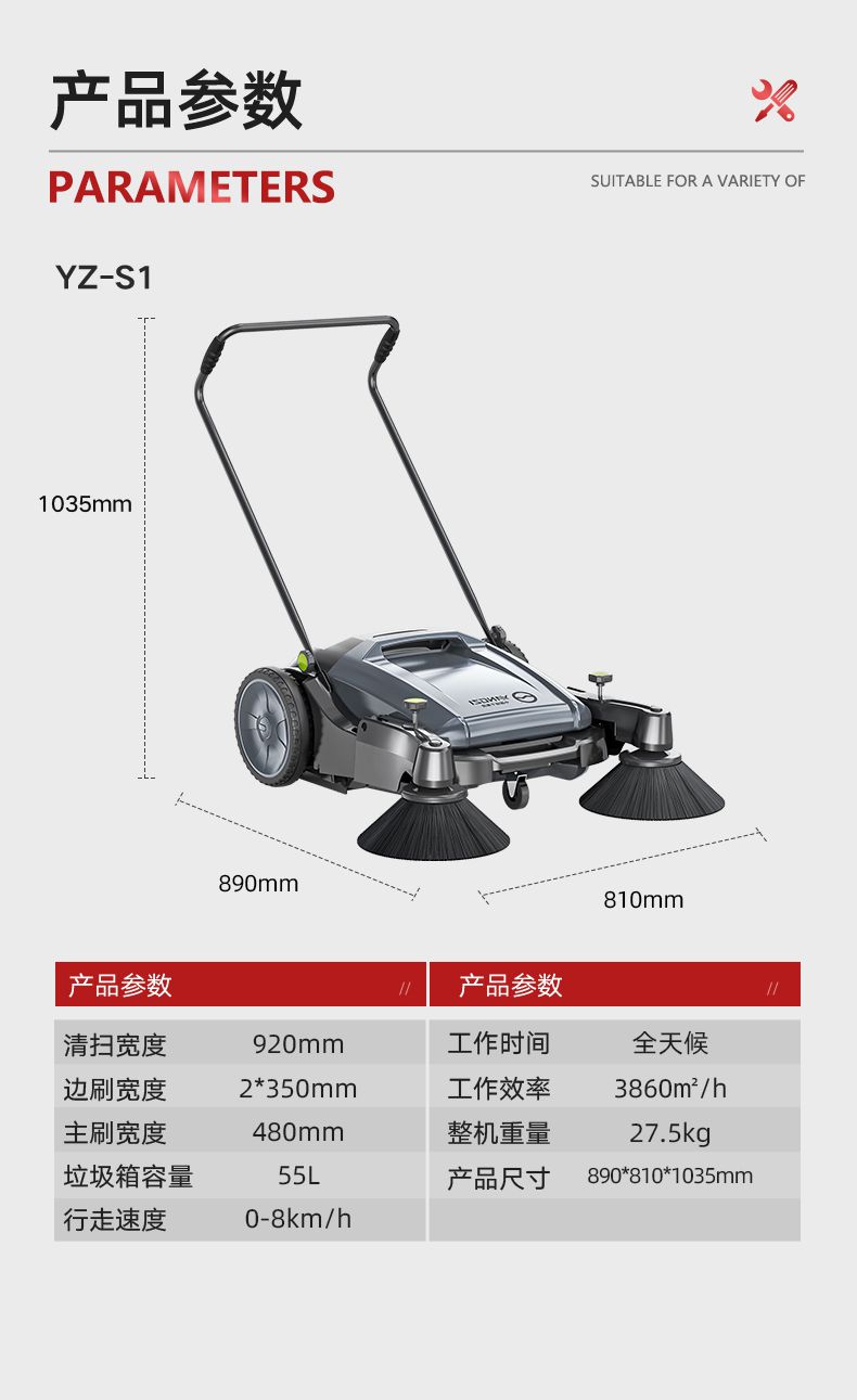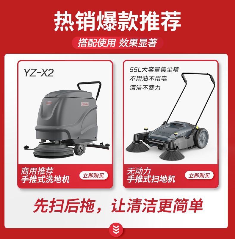 扬子YZ-S1手推式扫地机,清扫车,厂家直销,省30%成本,工作时间:全天候,重量:27.5kg,效率:3860m2/h,大于10人工作效率,干净不留痕,免费试机,买贵包退.专业的售后团队,免费上门指导操作和维护.扬子YZ-S1分55升和70升(普通款 工程款 塑料款 天窗款),想进一步了解,请咨询在线客服或拨打官方免费热线,客服详细解答产品参数和最新活动价格
