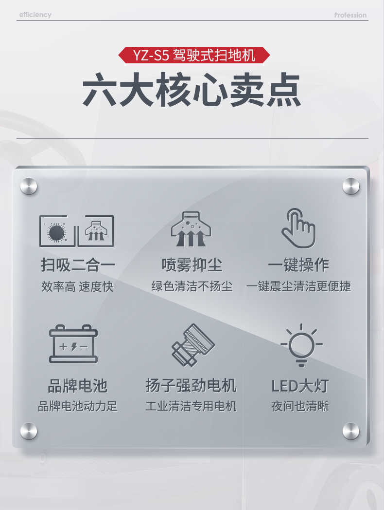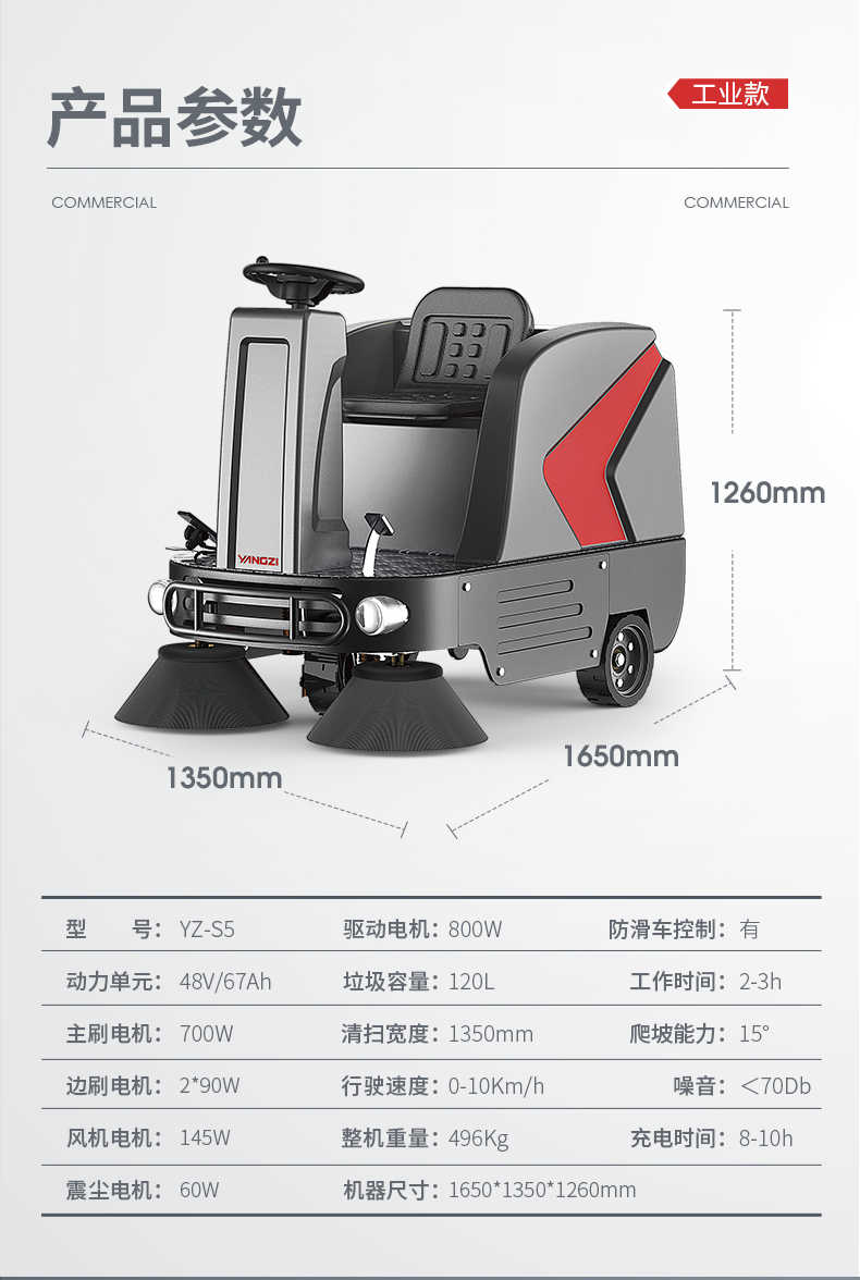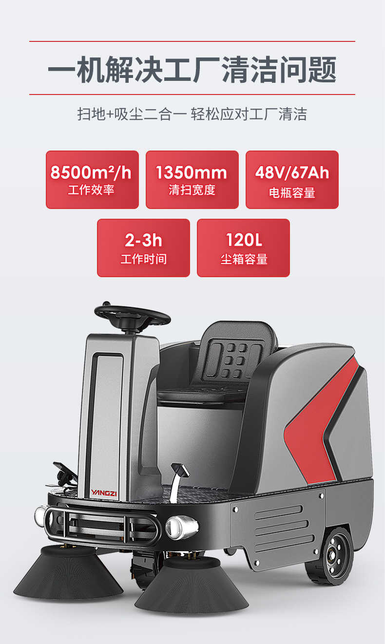 扬子YZ-S5驾驶式扫地车,清扫车,厂家直销,省30%成本,工作时间:2-3h,重量:496kg,效率:8500m2/h,大于10人工作效率,干净不留痕,免费试机,买贵包退.专业的售后团队,免费上门指导操作和维护.扬子YZ-S5分普通款和锂电款,想进一步了解,请咨询在线客服或拨打官方免费热线,客服详细解答产品参数和最新活动价格