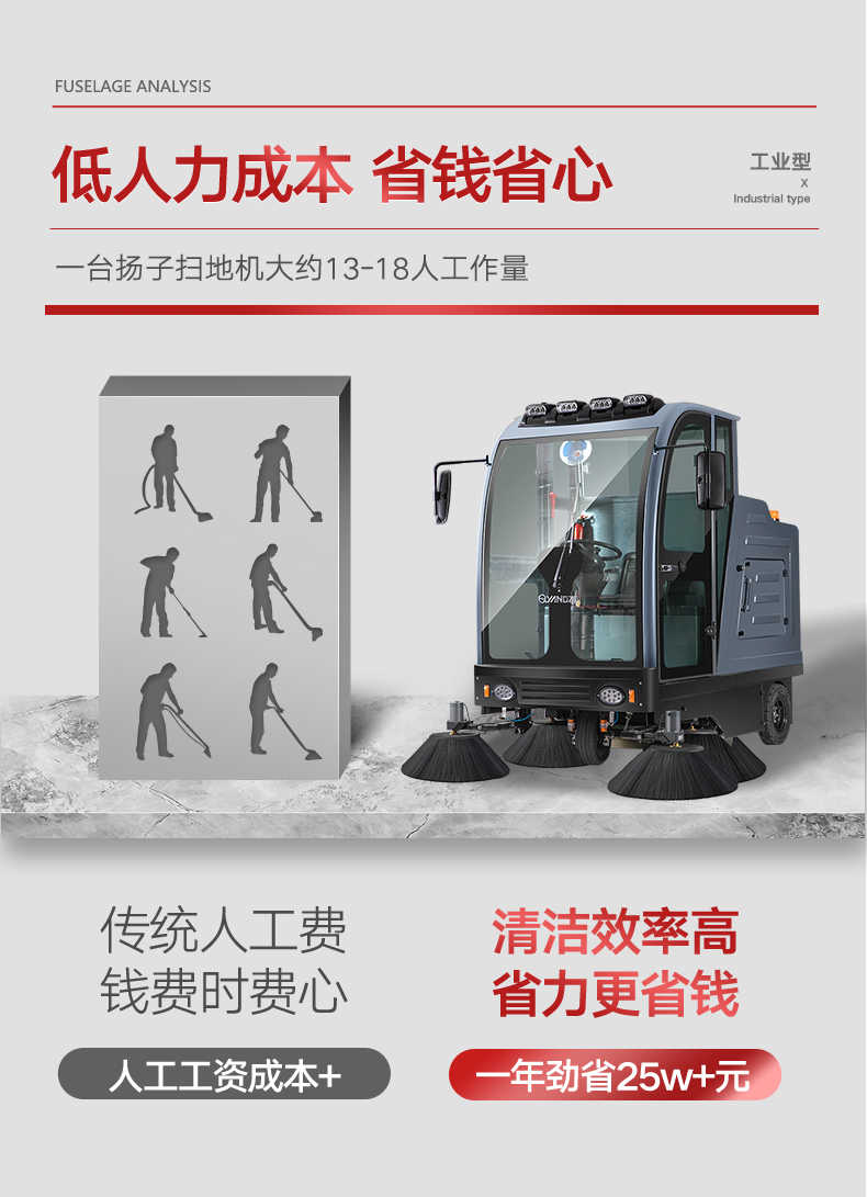 扬子YZ-S13驾驶式扫地车,清扫车,厂家直销,省30%成本,工作时间:5.5h,重量:990kg,效率:25600m2/h,大于20人工作效率,干净不留痕,免费试机,买贵包退.专业的售后团队,免费上门指导操作和维护.扬子YZ-S13分普通款和锂电款,想进一步了解,请咨询在线客服或拨打官方免费热线,客服详细解答产品参数和最新活动价格